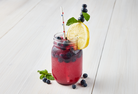 This decadent drink is inspired by iconic Texas bluebonnets which have served as a natural photo backdrop for many memorable life moments. Freshly squeezed citrus juices and blueberries are folded into a sugary base and then shaken well to achieve the perfect balance of sweet and tart. Then, the tasty concoction is poured over refreshing ice and topped with an optional lemon-mint-berry twist.